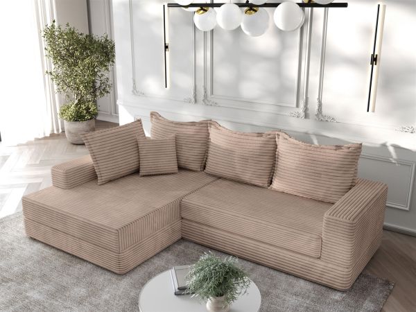 Ecksofa Couchgarnitur Sofa OSKAR in Stoff Tilia Hellbraun Ottomane Links