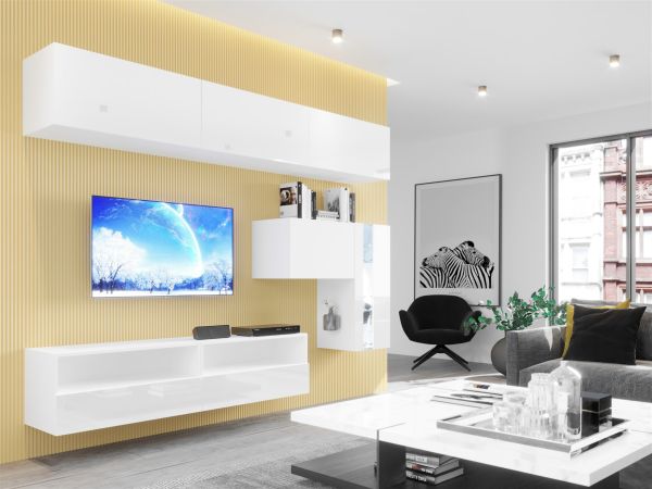 Mediawand Wohnwand 7 tlg – NEXI XL 33 – Weiss Hochglanz inkl. LED