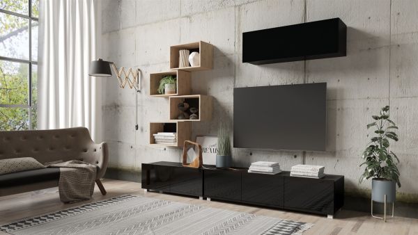 Mediawand Wohnwand 7 tlg – KAVOS 14 – Schwarz Hochglanz