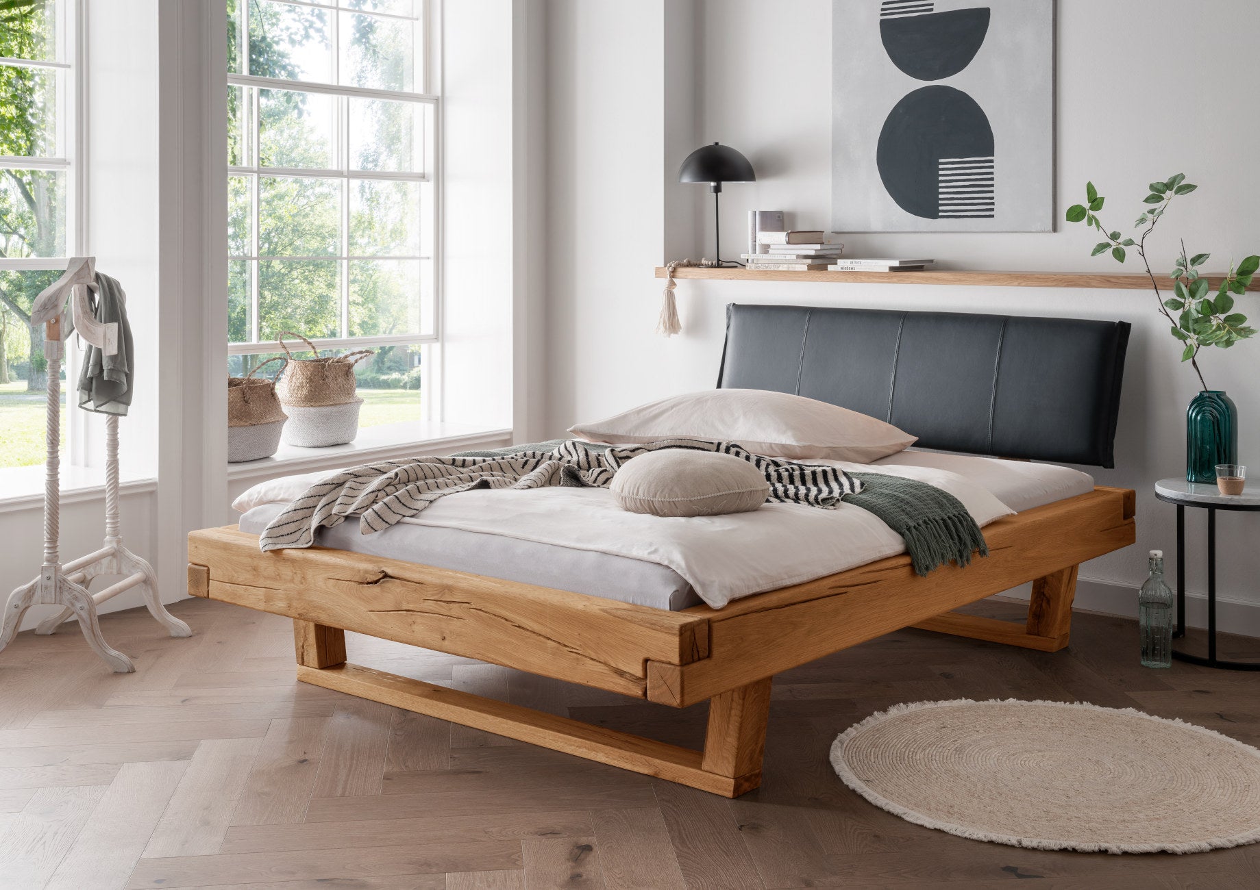 Balkenbett »Lund« mit Bettkasten Wildeiche Echtleder