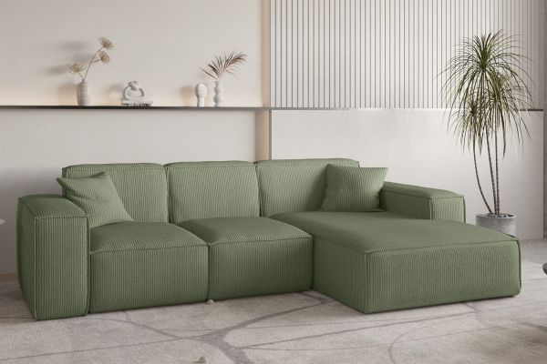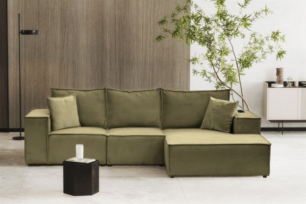 Ecksofa Sofa ALVARO inkl. QI Ladegerät Stoff Opera Velvet Olivgrün Ottomane Rechts