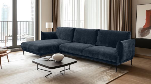 Ecksofa Designersofa MADISON in Stoff Dress Me Blau Ottomane Links