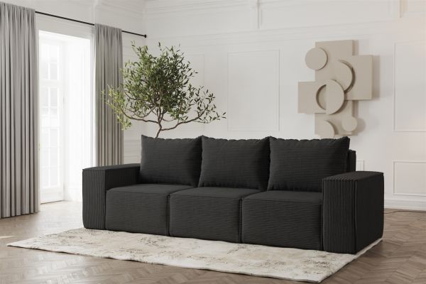 Sofa Designersofa ESTELLE 3-Sitzer in Stoff Poso Schwarz