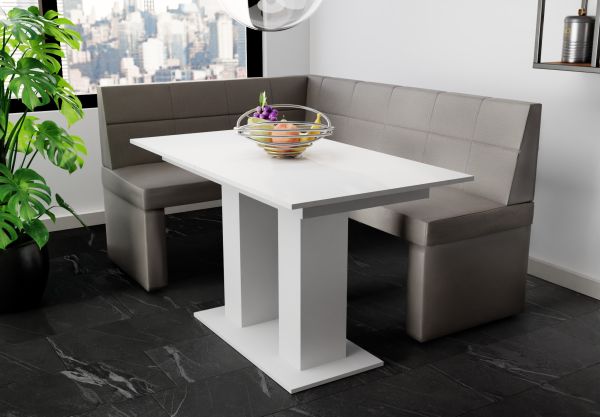 Eckbankgruppe 196×142 cm BLAKE XL R Kunstleder Grau / Esstisch DANTE Weiß