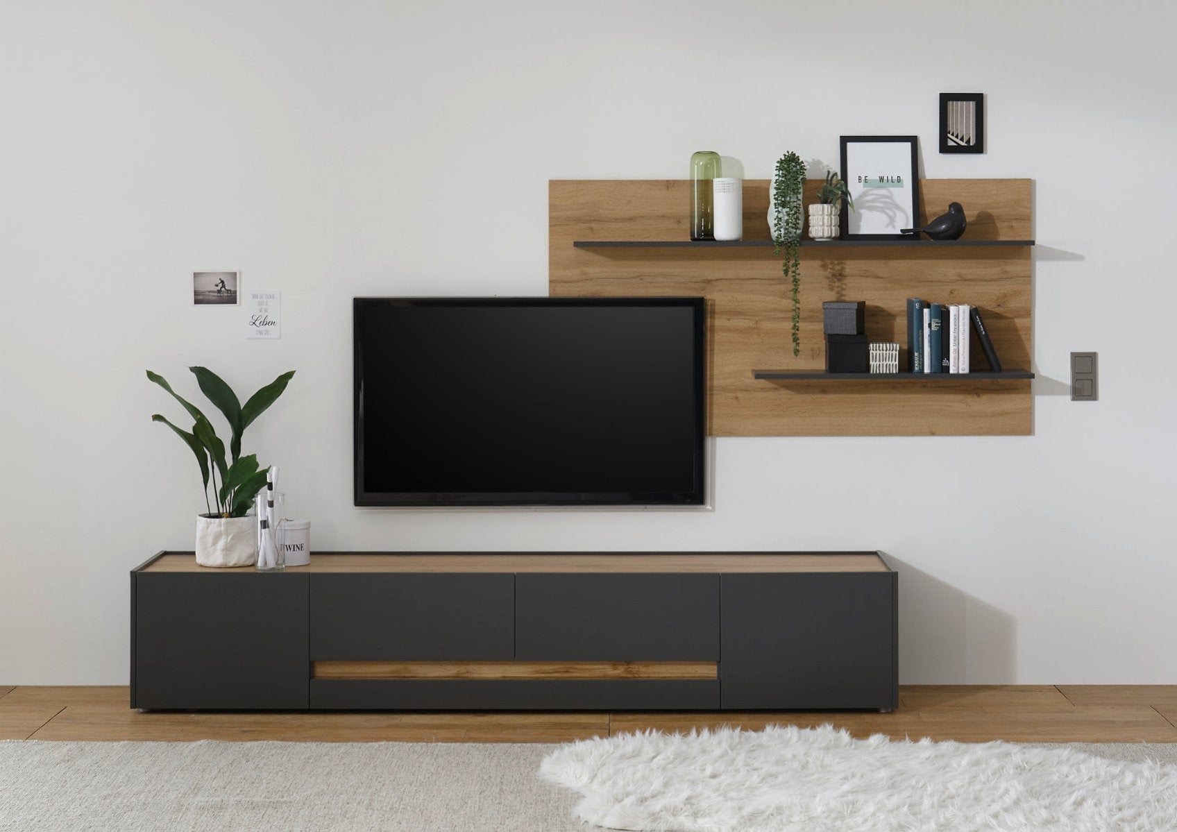 Wohnwand 300 cm Eiche Anthrazit 2-teilig Nr 15 BOSTON + Beleuchtung