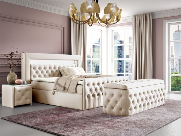 (Boxspringbett, ohne Nachttische, inkl. Polsterhocker)