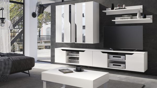 Wohnwand „DALLAS“ 6 tlg – Weiß Hochglanz