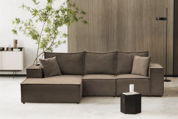 Ecksofa Sofa ALVARO inkl. QI Ladegerät Stoff Opera Velvet Braun Ottomane Links