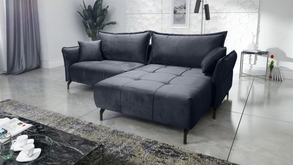 Ecksofa Schlafsofa Sofa VICTORIA Stoff Element Dunkelgrau Ottomane Rechts
