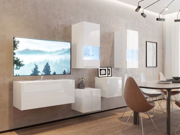 Mediawand Wohnwand 5 tlg – NEXI XL 28 – Weiss Hochglanz inkl. LED