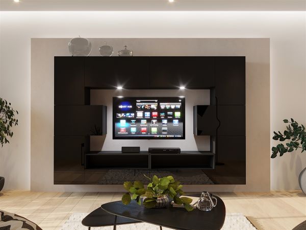 Mediawand Wohnwand 10 tlg – NEXI XL 16 – Schwarz Hochglanz inkl. LED