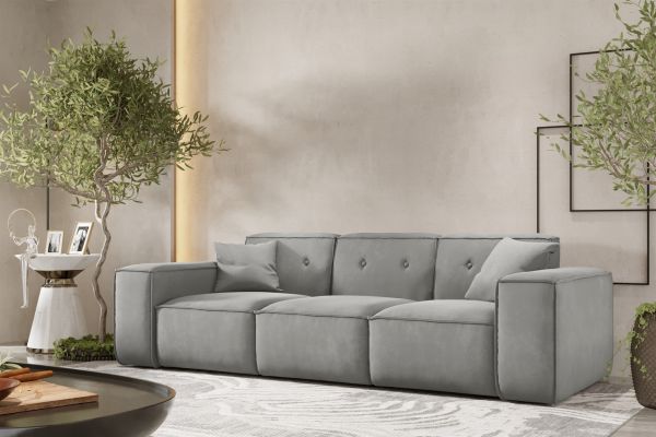 Sofa Designersofa CESINA 3-Sitzer in Stoff Opera Velvet Steingrau