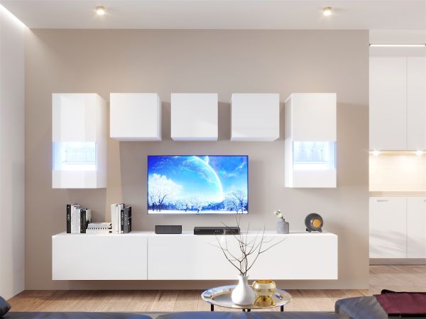 Mediawand Wohnwand 8 tlg – NEXI XL 25 – Weiss Hochglanz inkl. LED
