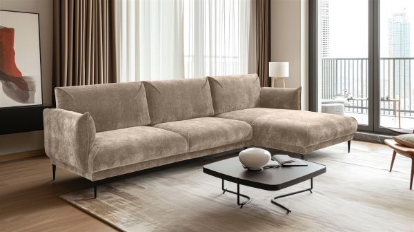 Ecksofa Designersofa MADISON in Stoff Dress Me Beige Ottomane Rechts